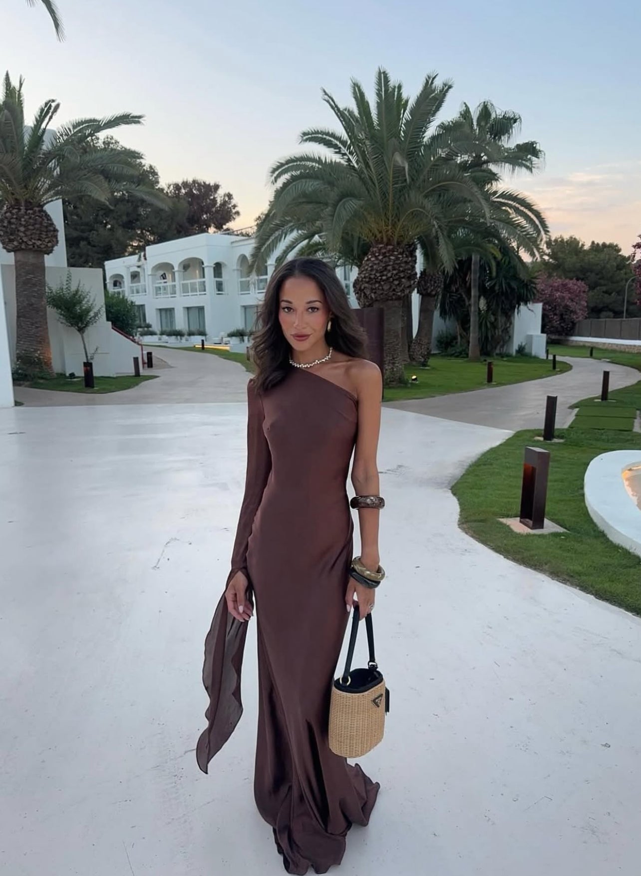 Chocolate Brown One Shoulder Maxi Dress